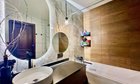 ВАННАЯ КОМНАТА: вас порадует премиальная отделка, стены и пол облицованы современным керамогранитом «под мрамор». Широкая дизайнерская тумба с раковиной – очень вместительная и функциональная. Зеркало обрамляет яркая LED-подсветка.